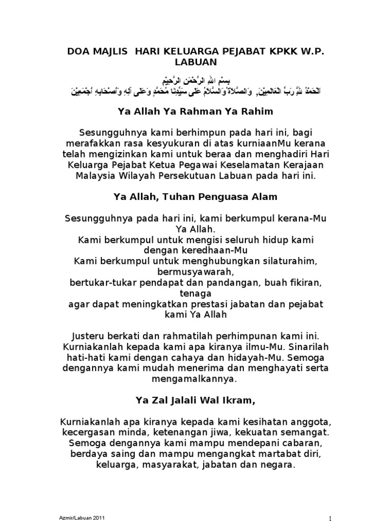 0 Response to "Doa Majlis Rasmi Jabatan"